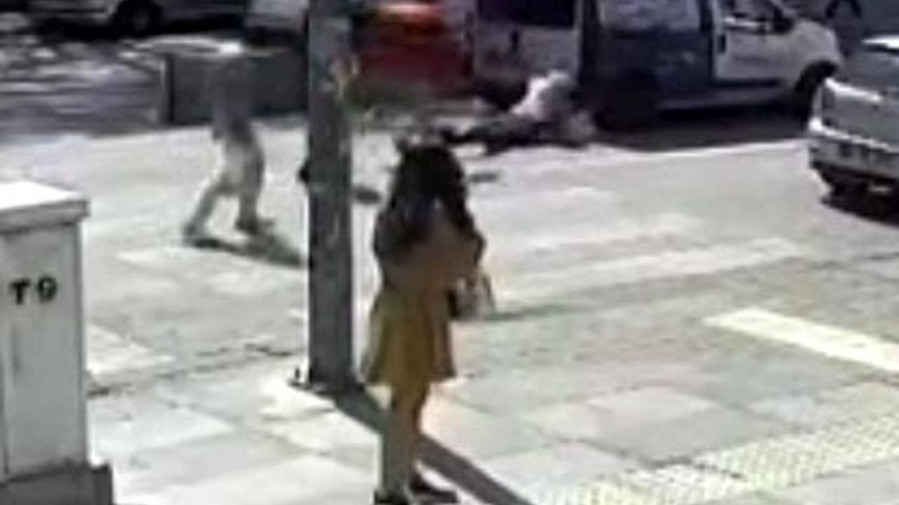Olay güvenlik kamerasına da yansıdı. Görüntüde hafif ticari araçtan inen sürücünün yaya geçidini kullanan kadını yumruklayarak darbettiği, daha sonra aracına binip kaçtığı görüldü.