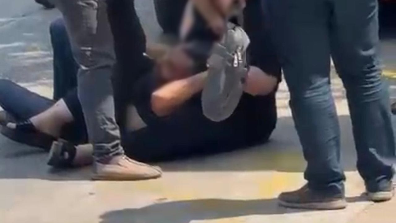 Öte yandan kadının, 'Ailemi dolandırdın' diyerek eski eşini darbettiği anlar cep telefonu kamerasına yansıdı. (DHA)