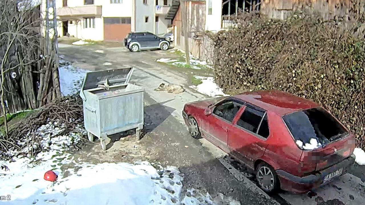 Bolu'da bir sürücü, yolda uyuyan köpeğin üzerinden aracıyla geçerek yoluna devam etti. Köpeğin arka bacakları kırılırken, yaşananlar bir evin güvenlik kamerasına yansıdı.