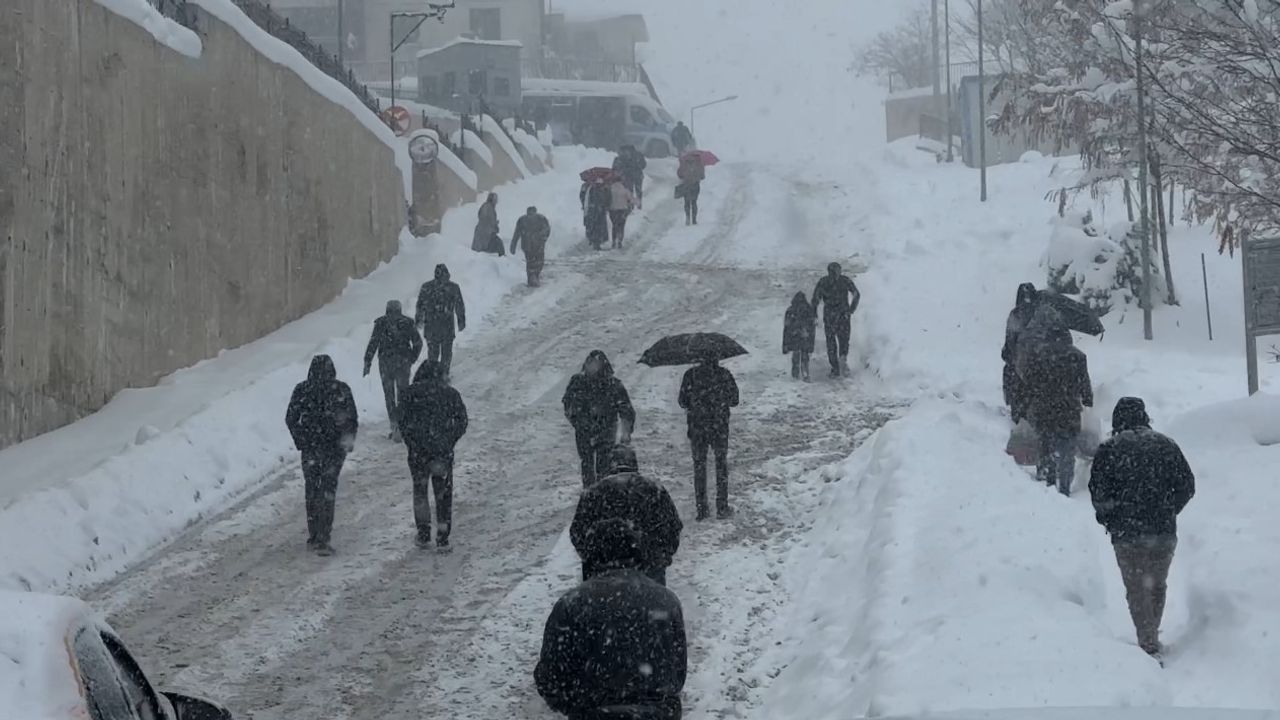 Mağduriyetini dile getiren vatandaşlardan Renas Doğmaz, 'Yoğun kar yağışı nedeniyle aracımızla yolda kaldık. Kimse ilerleyemiyor. Aracımızı bırakıp yürümek zorunda kaldık. Ekiplerin yolları sürekli temizlemesini bekliyoruz' ifadelerini kullandı.